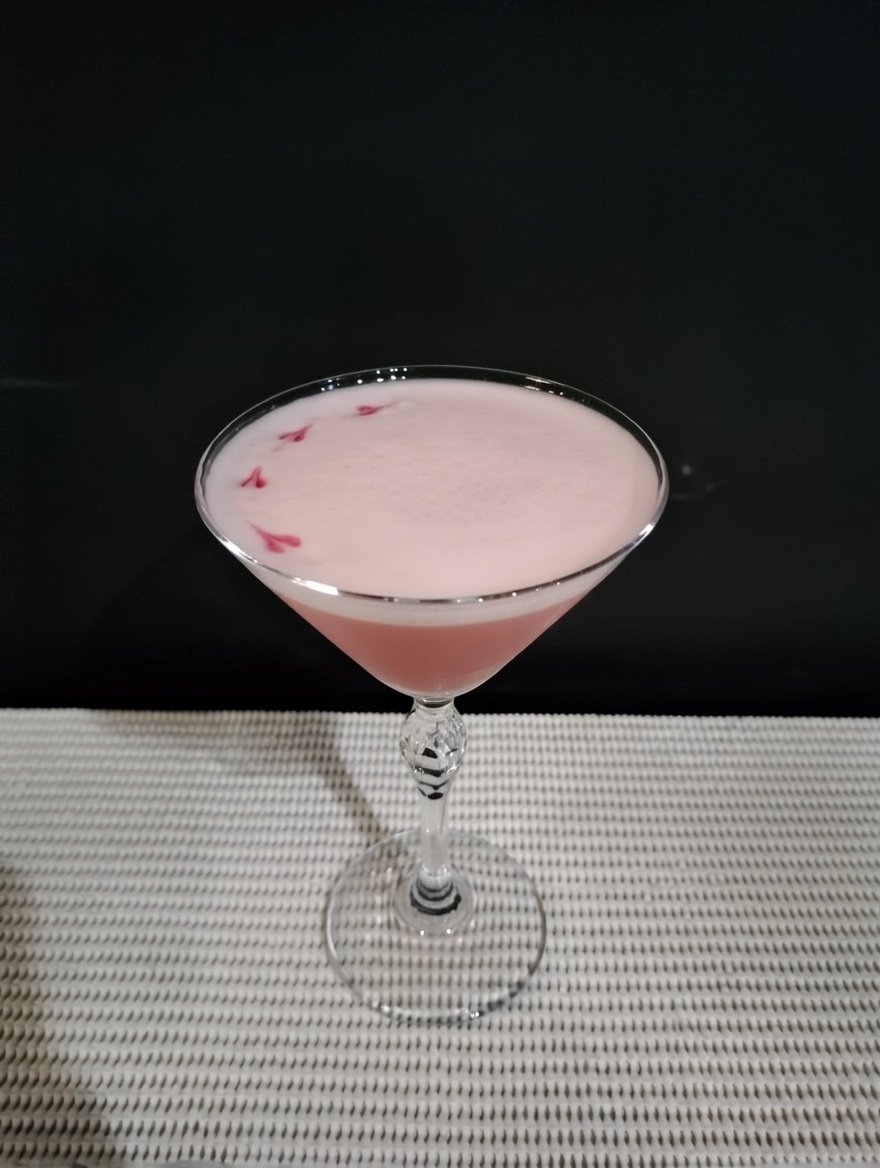 Place all ingredients in a shaker. Shake with ice for 10 seconds. Double strain into a large martini glass. Garnish with 4 drops of grenadine syrup. Drag a tooth pick through the drops to create love hearts. Enjoy